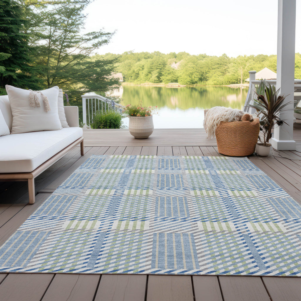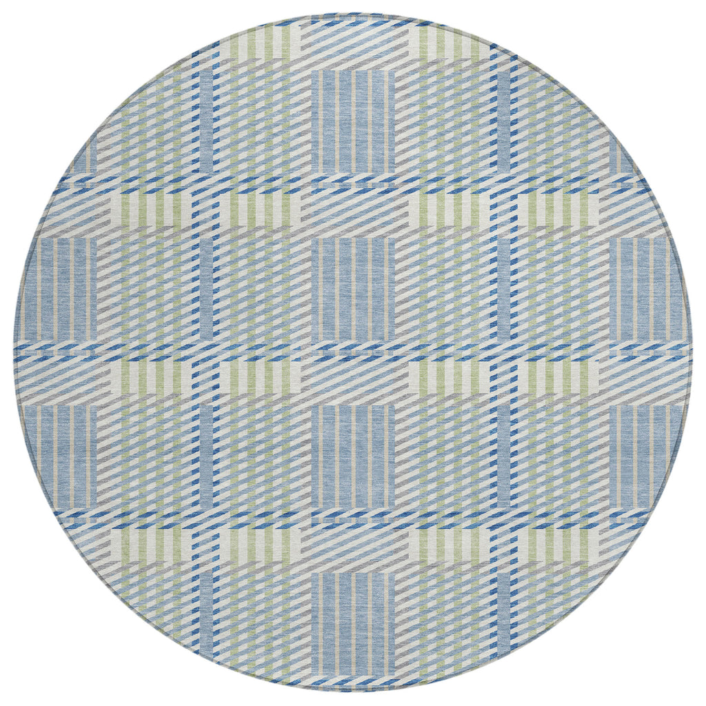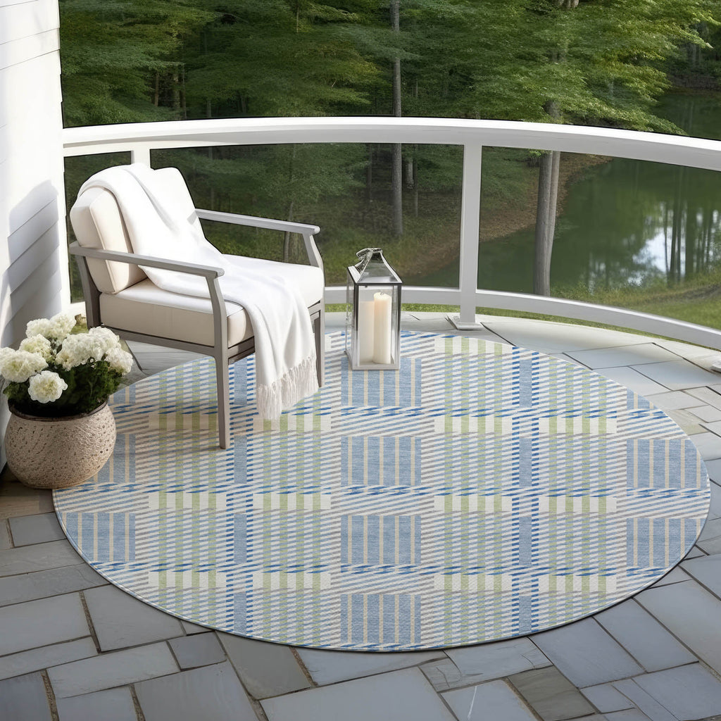 Our area rug, adorned with a sophisticated plaid pattern, complements any setting with its transitional style. The harmonious plaid design enhances the aesthetic appeal of your living area or patio. Its crafted to last with UV stabilization and is suitable for both indoor and outdoor environments. Additionally, its ultra-thin construction and machine-washable feature make it perfect for homes bustling with family and pets.