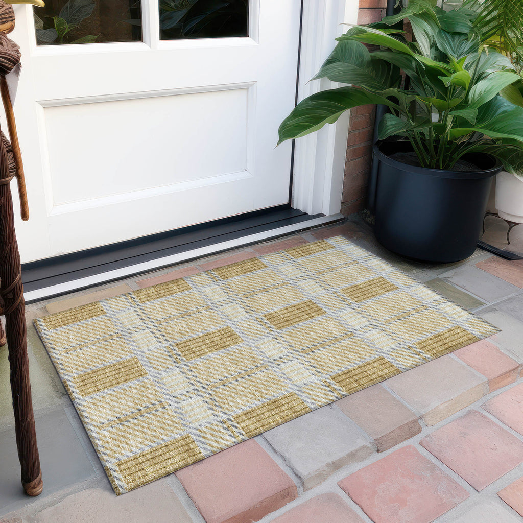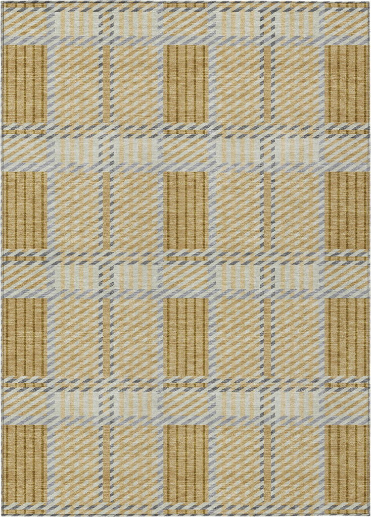 Our area rug, adorned with a sophisticated plaid pattern, complements any setting with its transitional style. The harmonious plaid design enhances the aesthetic appeal of your living area or patio. Its crafted to last with UV stabilization and is suitable for both indoor and outdoor environments. Additionally, its ultra-thin construction and machine-washable feature make it perfect for homes bustling with family and pets.