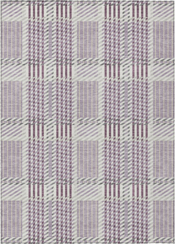 Our area rug, adorned with a sophisticated plaid pattern, complements any setting with its transitional style. The harmonious plaid design enhances the aesthetic appeal of your living area or patio. Its crafted to last with UV stabilization and is suitable for both indoor and outdoor environments. Additionally, its ultra-thin construction and machine-washable feature make it perfect for homes bustling with family and pets.