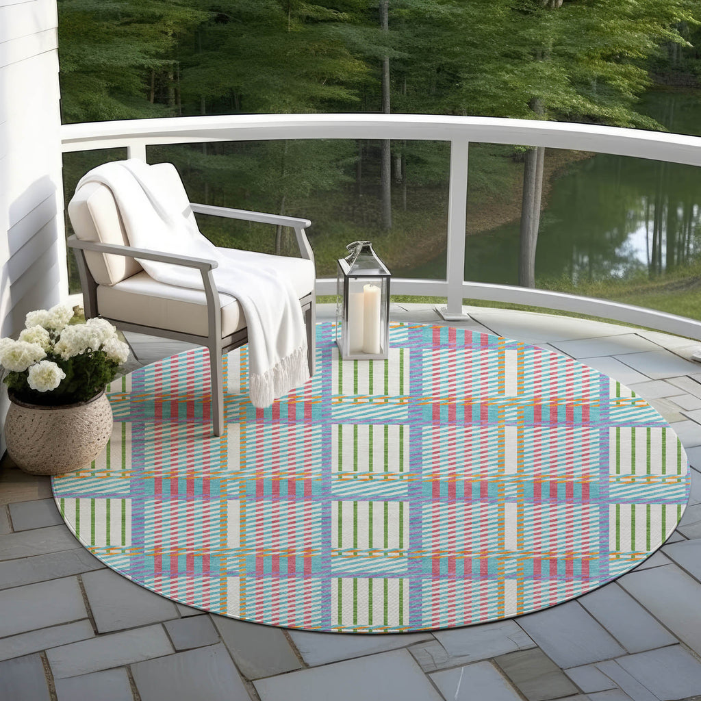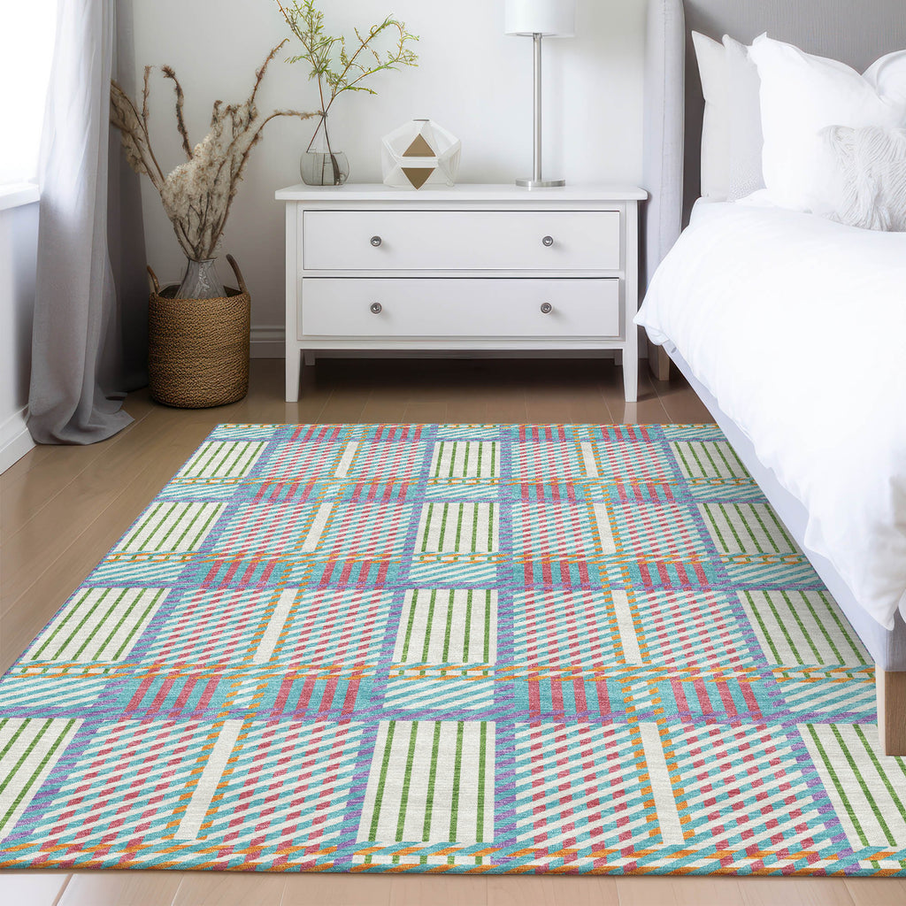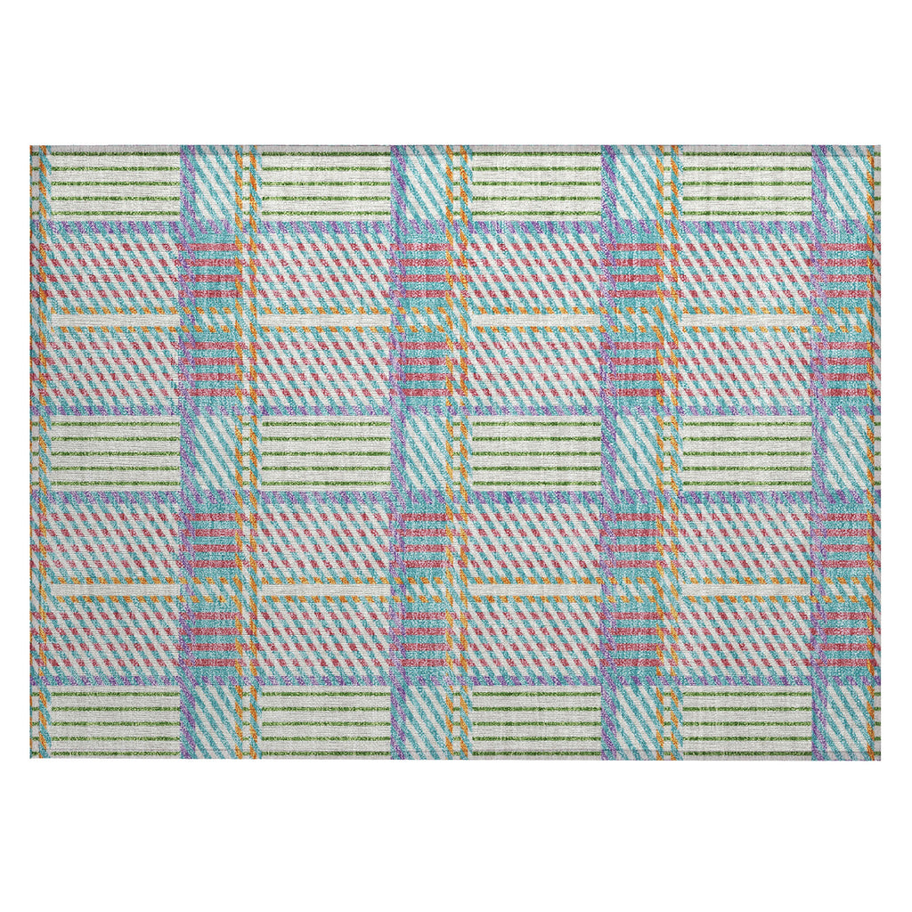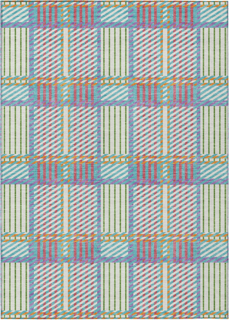 Our area rug, adorned with a sophisticated plaid pattern, complements any setting with its transitional style. The harmonious plaid design enhances the aesthetic appeal of your living area or patio. Its crafted to last with UV stabilization and is suitable for both indoor and outdoor environments. Additionally, its ultra-thin construction and machine-washable feature make it perfect for homes bustling with family and pets.