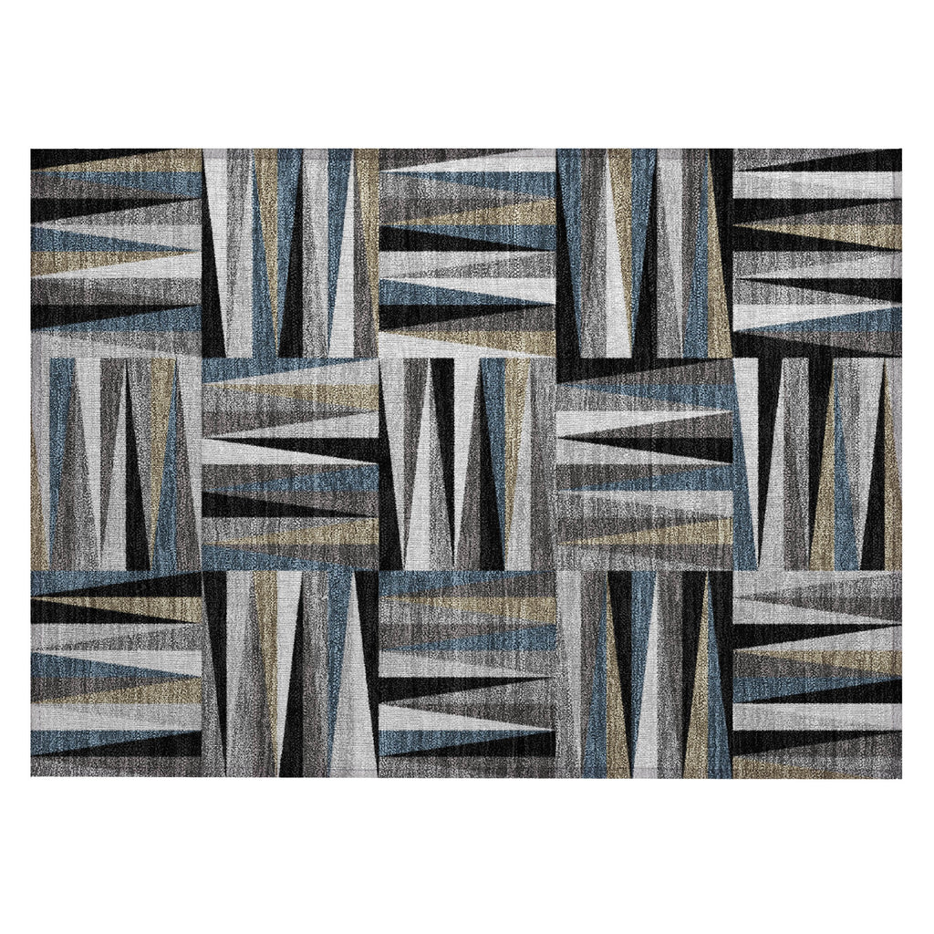 Elevate your home decor with our elegant area rug, showcasing square panels highlighted by two-toned arrow points in each, creating a striking visual effect. The transitional style of this rug makes it a versatile addition to any setting, seamlessly integrating with various interior themes. It is UV stabilized to withstand the elements, features ultra-thin construction for high-traffic areas, and is machine-washable, ensuring it remains a durable choice for busy, pet-friendly households.