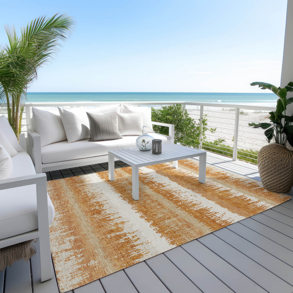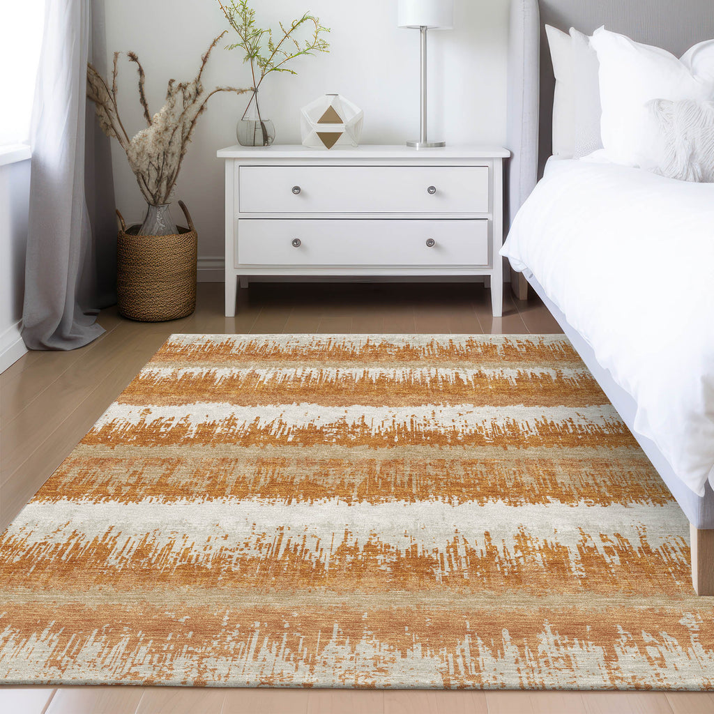 The sleek horizontal stripes and subtle drip effects of our transitional area rug will elevate your homes aesthetic with modern sophistication. This versatile design seamlessly integrates into any space. Crafted to last, its UV stabilized for use in both indoor and outdoor environments and boasts an ultra-thin profile for convenience. Additionally, the machine-washable material and pet-friendly quality make it an ideal choice for families looking for both style and practicality.