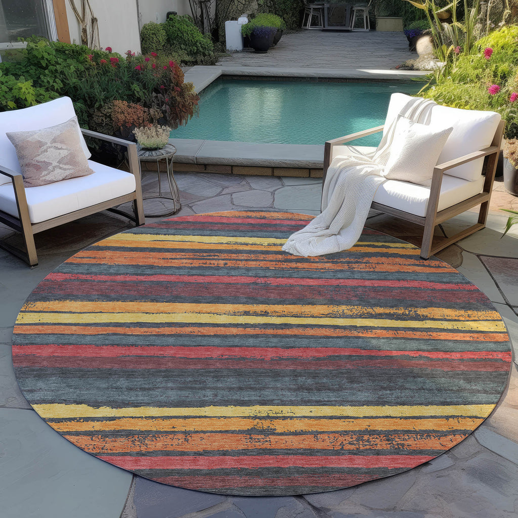 Step into comfort with our transitional area rug, where naturally drawn stripes create a cozy, homey atmosphere. This beautifully striped rug is perfect for any setting, effortlessly adding a touch of warmth to your space. It's UV stabilized to withstand the elements, whether used inside or out, and its ultra-thin design makes it easy to place anywhere. Family and pet friendly, and easy to clean thanks to its machine-washable fabric, it's designed for everyday living.