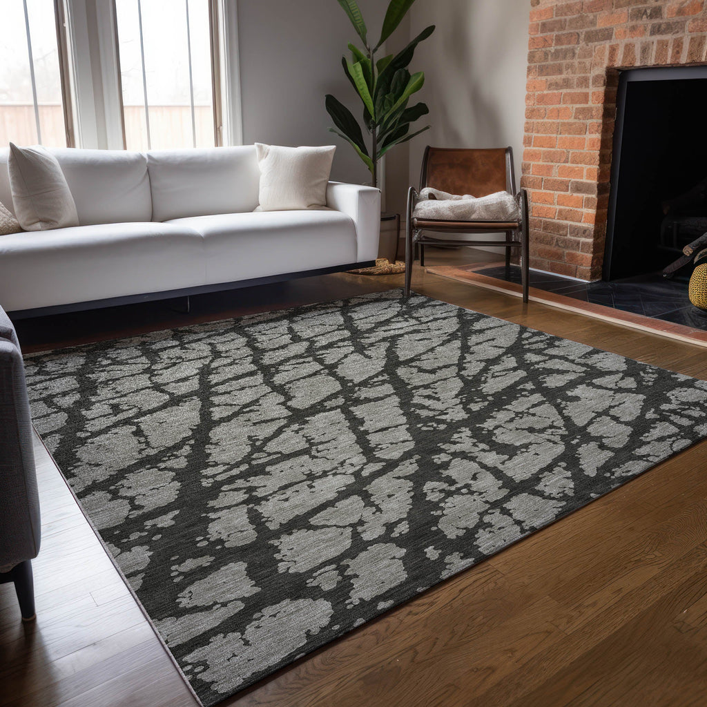 Revitalize your space with our area rug, beautifully showcasing an organic and modern crackle transitional pattern. This unique combination of transitional and organic themes injects an exciting freshness into your decor. The rug, which is UV stabilized, is equally at home indoors or outdoors, expanding your decorative options. With an ultra-thin construction and a non-skid backing incorporated into its design, the need to purchase a separate rug pad is eliminated. It's machine-washable, making it a delight for families with kids and pets who love to play. You can trust in the quality and durability of this stylish rug.