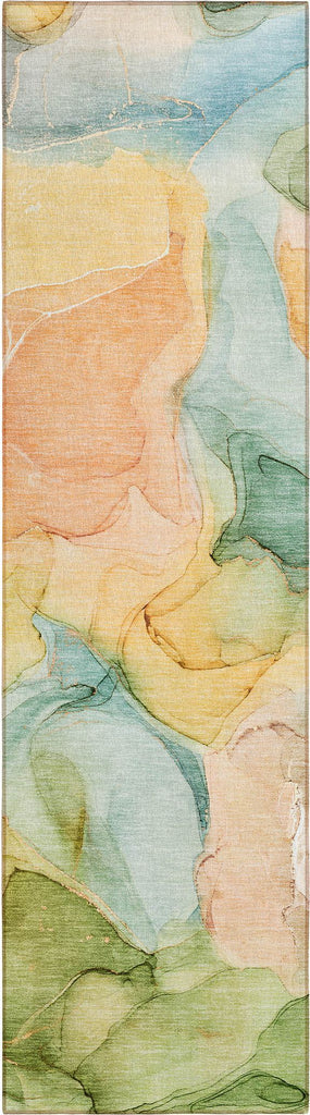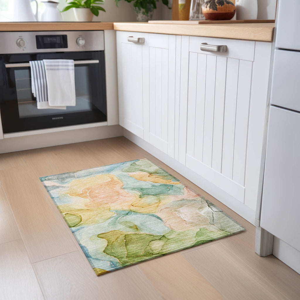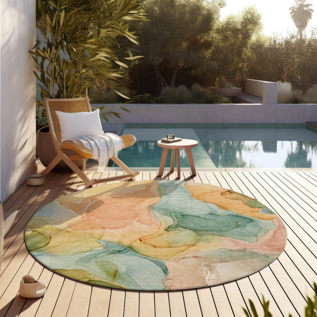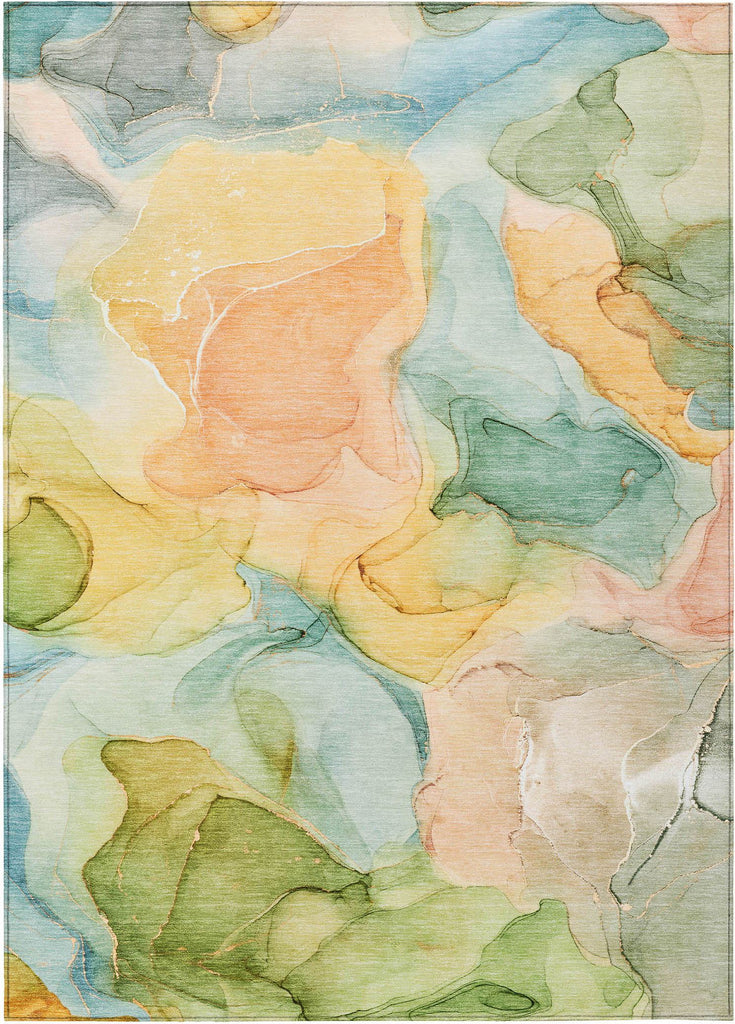 Enrich your home with our soft watercolor-inspired transitional area rug. The beautiful hues add a touch of elegance to any room. This rug is UV stabilized for indoor and outdoor use, and the ultra-thin construction includes a non-skid backing, eliminating the need for a separate rug pad. Plus, it's machine-washable and perfect for families with pets.