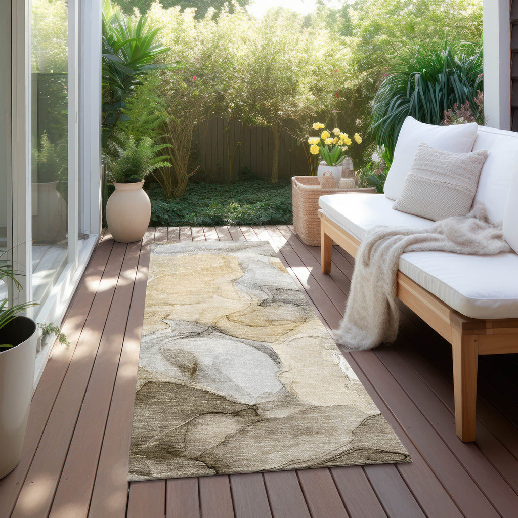 Enrich your home with our soft watercolor-inspired transitional area rug. The beautiful hues add a touch of elegance to any room. This rug is UV stabilized for indoor and outdoor use, and the ultra-thin construction includes a non-skid backing, eliminating the need for a separate rug pad. Plus, it's machine-washable and perfect for families with pets.