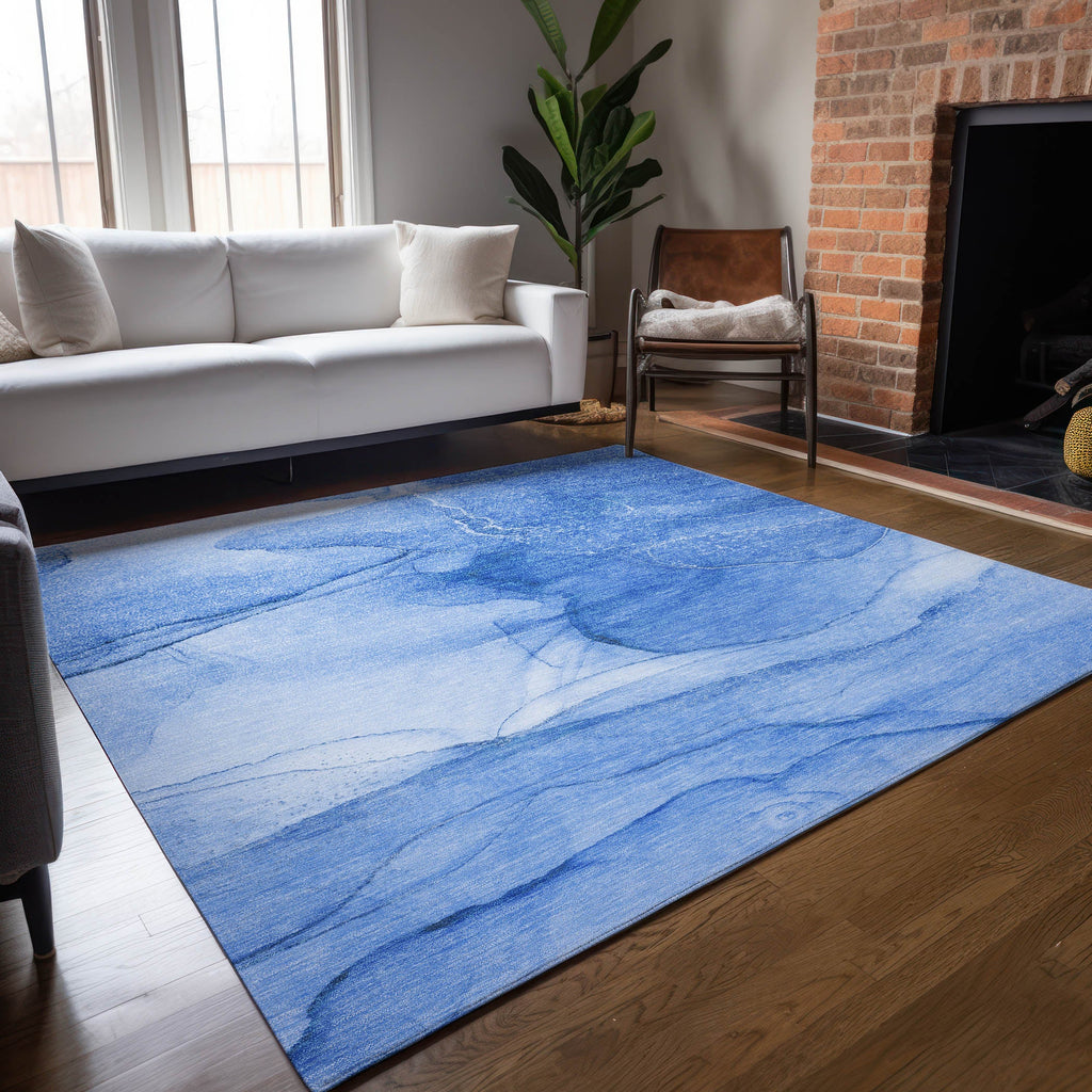 Treat your home to our transitional area rug, crafted with a blend of soft watercolors for a tonal modern design that enchants and calms. Ideal for indoor or outdoor use, this UV-stabilized rug boasts an ultra-thin construction with a non-skid backing, thus eliminating the need for an additional rug pad. It's machine-washable, family, and pet-friendly, making it the perfect fit for your home.