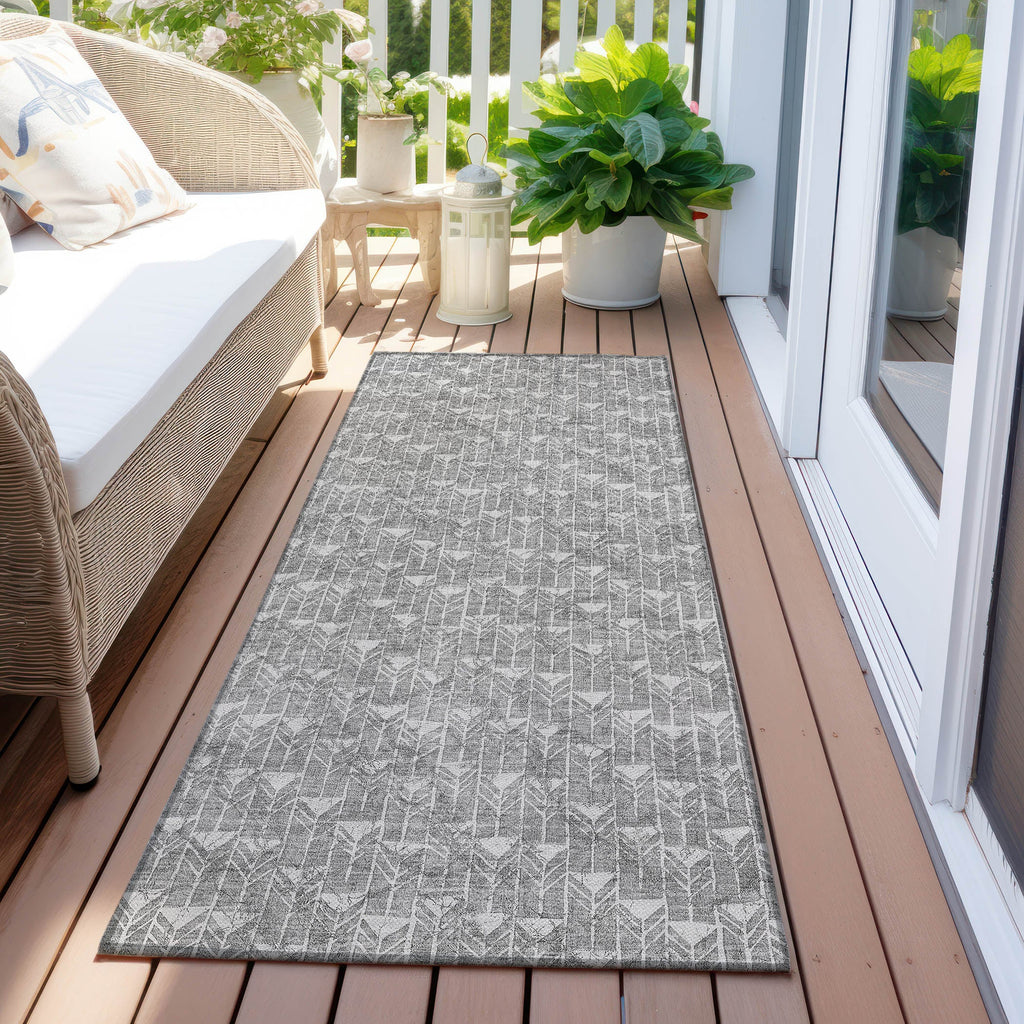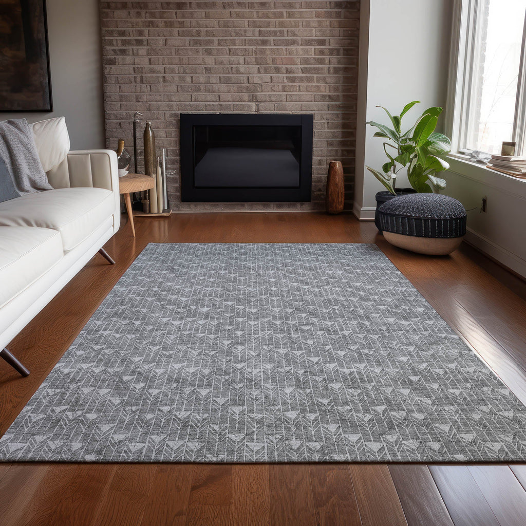 Bring a sense of direction to your home with our transitional area rug, featuring a unique geometric arrow pattern. This UV-stabilized rug is perfect for indoor or outdoor use, with an ultra-thin construction and non-skid backing that negates the need for a separate rug pad. Plus, it's machine-washable, making it a practical choice for busy households and pet owners.