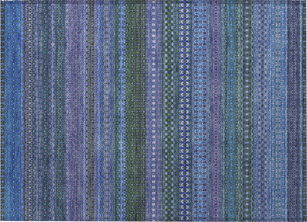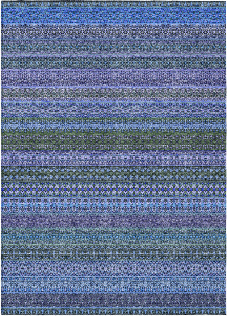Create a whimsical atmosphere with our area rug, where an eclectic mix of shapes and motifs brings personality to your floor. This transitional striped rug is a conversation starter. With UV stabilization, it can be confidently used indoors or outdoors. The ultra-thin construction includes an incorporated non-skid backing, providing stability and eliminating the need for a separate rug pad. It's machine-washable and designed to be family and pet-friendly, making it a practical choice for busy households.