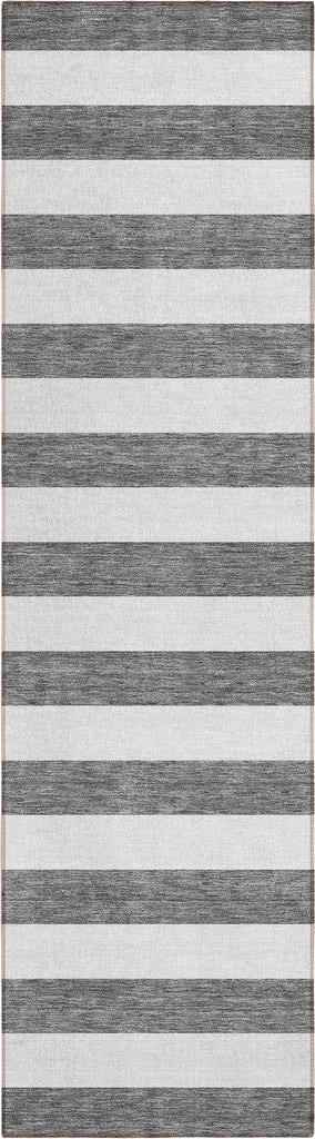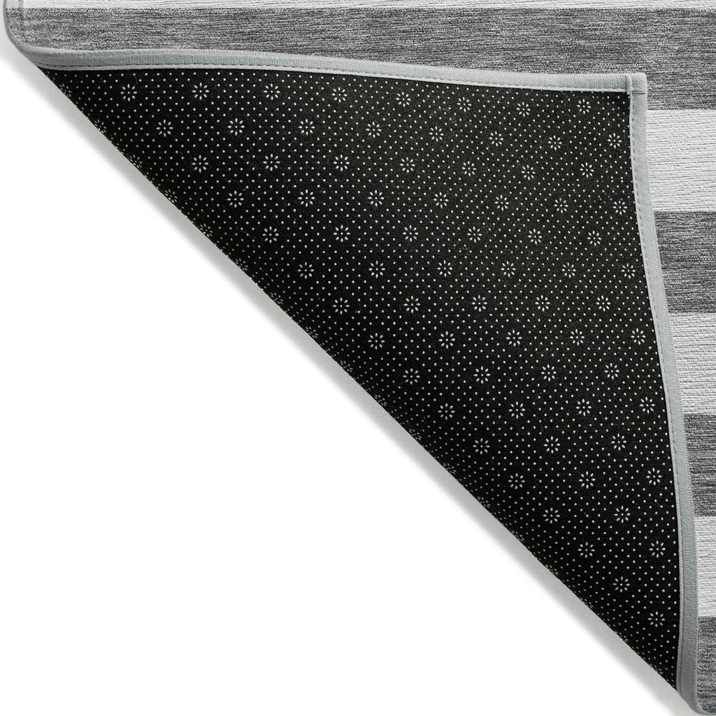 Make a bold statement with our area rug, showcasing bold thick cabana lines that create a sense of energy and visual interest. This transitional striped rug is a unique and eye-catching addition to any room. With UV stabilization, it can be confidently used indoors or outdoors, allowing for versatile placement. The ultra-thin construction includes an incorporated non-skid backing, ensuring stability and eliminating the need for a separate rug pad. It's machine-washable and designed to be family and pet-friendly, making it a practical choice for busy households.