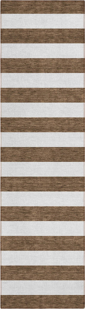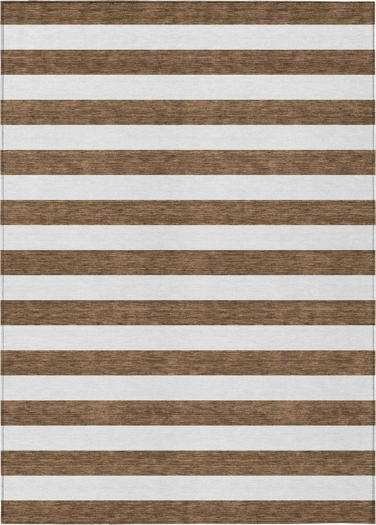 Make a bold statement with our area rug, showcasing bold thick cabana lines that create a sense of energy and visual interest. This transitional striped rug is a unique and eye-catching addition to any room. With UV stabilization, it can be confidently used indoors or outdoors, allowing for versatile placement. The ultra-thin construction includes an incorporated non-skid backing, ensuring stability and eliminating the need for a separate rug pad. It's machine-washable and designed to be family and pet-friendly, making it a practical choice for busy households.