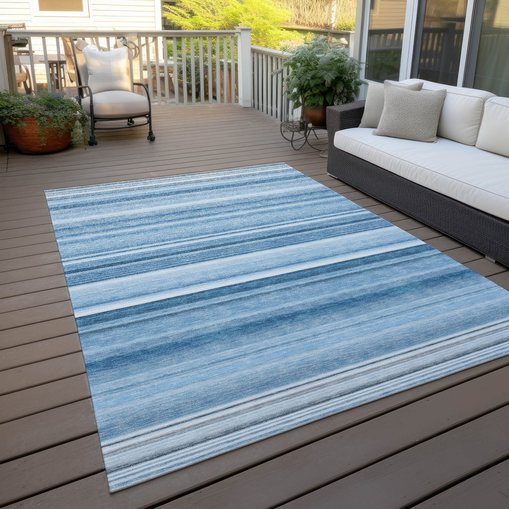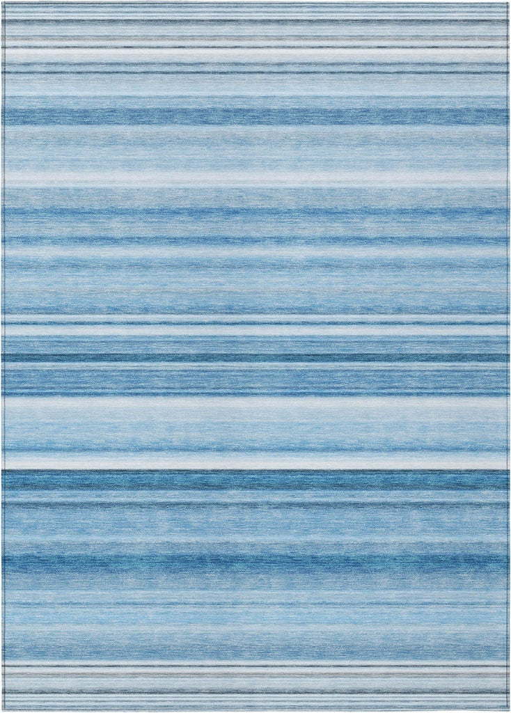 Transform your space with our area rug, featuring horizontal lines in soft tonal hues that add a timeless element to your home. This transitional striped rug is a versatile and stylish choice. With UV stabilization, it can be confidently used indoors or outdoors, offering flexibility in placement. The ultra-thin construction includes an incorporated non-skid backing, ensuring stability and eliminating the need for a separate rug pad. It's machine-washable and designed to be family and pet-friendly, making it a practical and convenient option.