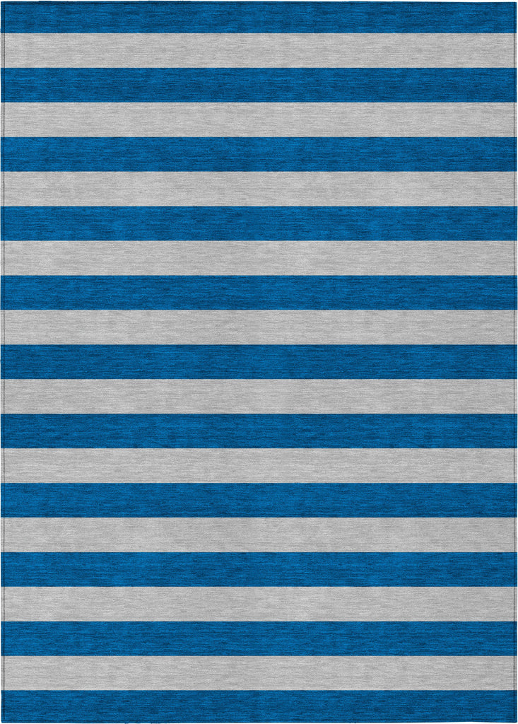 Introduce an effortless addition to your decor with our area rug, featuring two color horizontal thick lines that create a visually appealing element. This transitional striped rug seamlessly blends into any space. With UV stabilization, it can be confidently used indoors or outdoors, providing versatility in placement. The ultra-thin construction includes an incorporated non-skid backing, ensuring stability and eliminating the need for a separate rug pad. It's machine-washable and designed to be family and pet-friendly, making it a practical and convenient choice.