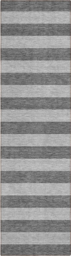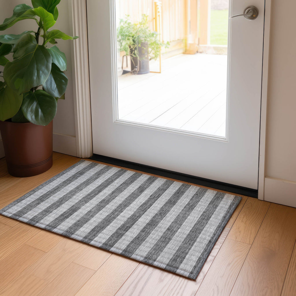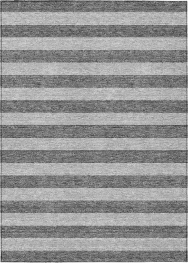 Introduce an effortless addition to your decor with our area rug, featuring two color horizontal thick lines that create a visually appealing element. This transitional striped rug seamlessly blends into any space. With UV stabilization, it can be confidently used indoors or outdoors, providing versatility in placement. The ultra-thin construction includes an incorporated non-skid backing, ensuring stability and eliminating the need for a separate rug pad. It's machine-washable and designed to be family and pet-friendly, making it a practical and convenient choice.