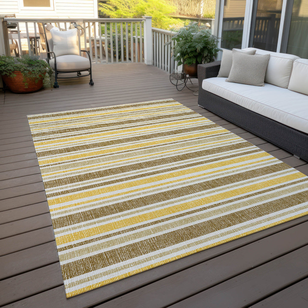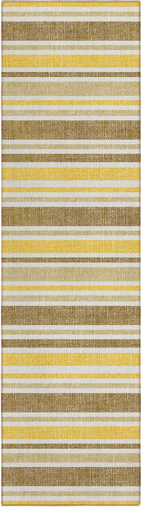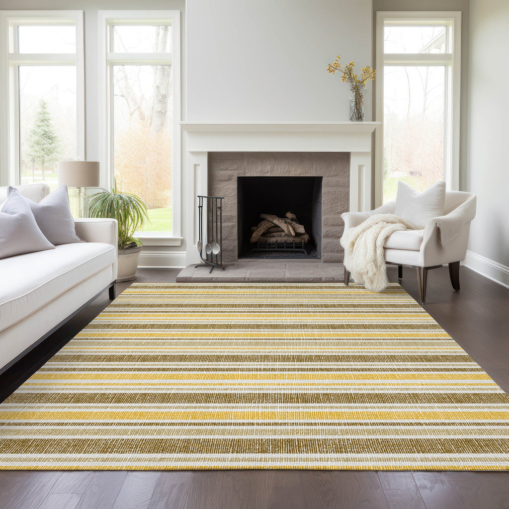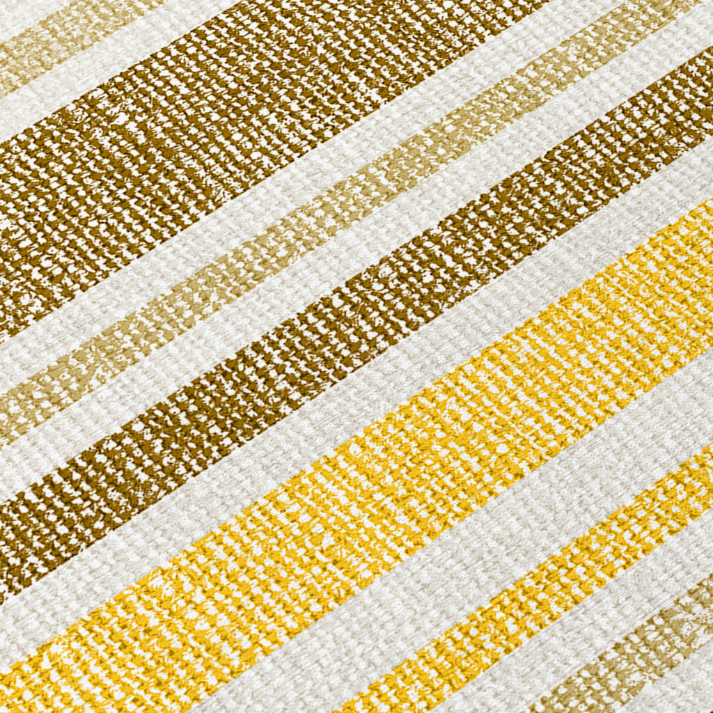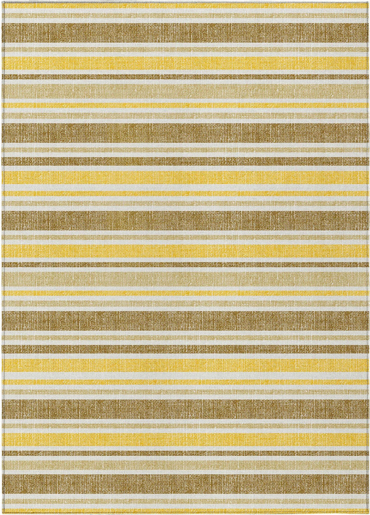 Elevate the style of your room with our area rug, boasting stripes that offer complementing colors to catch the eye and add energy to the space. This transitional striped rug seamlessly integrates into any decor. It is UV stabilized for indoor or outdoor use, and its ultra-thin construction with an incorporated non-skid backing ensures stability without the need for a separate rug pad. Machine-washable and family and pet-friendly, this rug combines practicality and versatility.