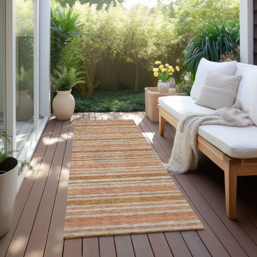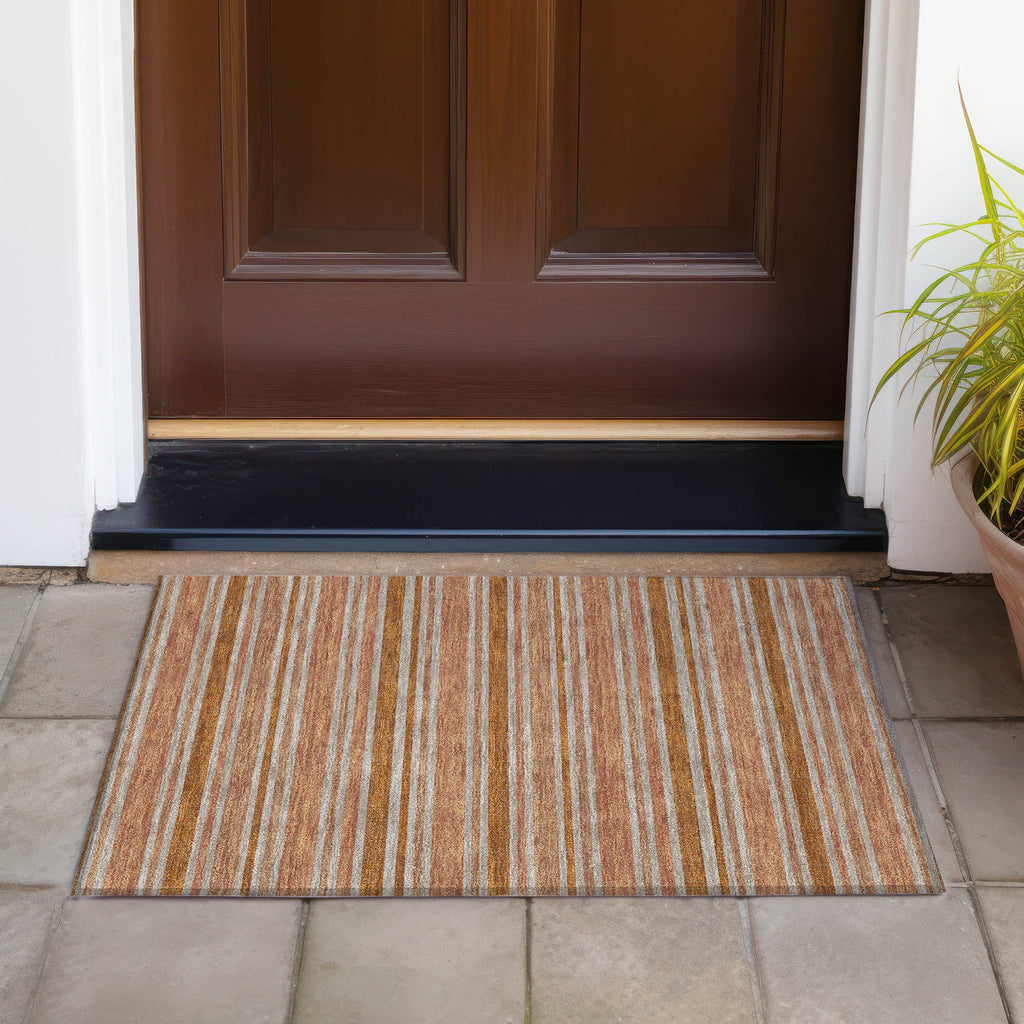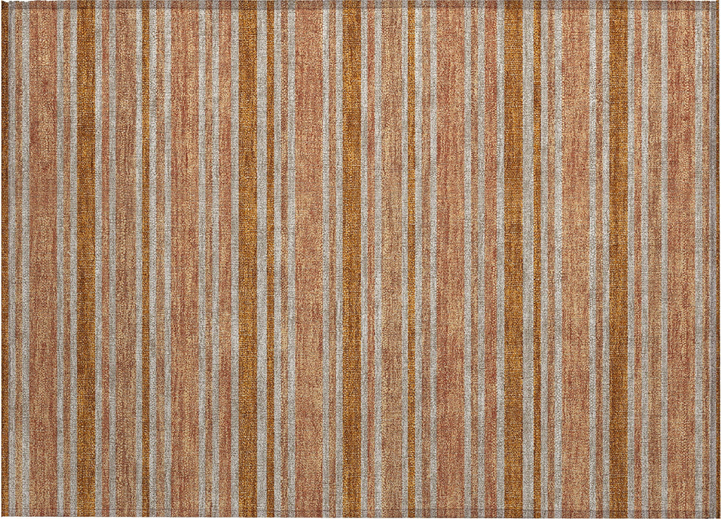Elevate the style of your room with our area rug, boasting stripes that offer complementing colors to catch the eye and add energy to the space. This transitional striped rug seamlessly integrates into any decor. It is UV stabilized for indoor or outdoor use, and its ultra-thin construction with an incorporated non-skid backing ensures stability without the need for a separate rug pad. Machine-washable and family and pet-friendly, this rug combines practicality and versatility.