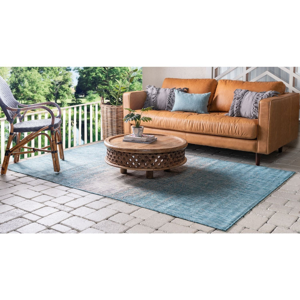 Unique Loom Outdoor Ombre OMD016AQB Aqua Blue Rug